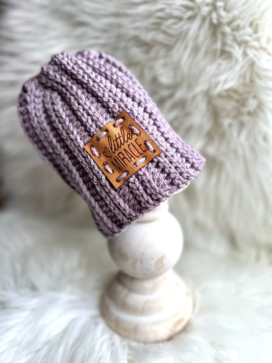 Lavender Infant patch "Little Miracle" beanie 0-3 mo