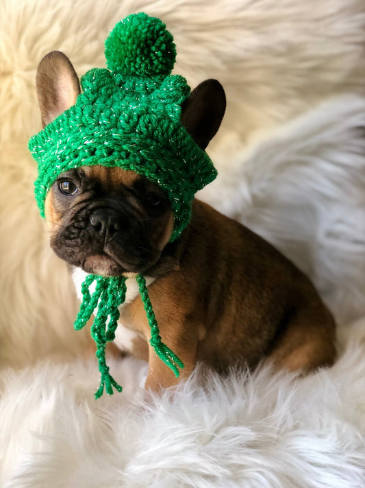 French Bulldog pup pom pom Holiday beanie hat