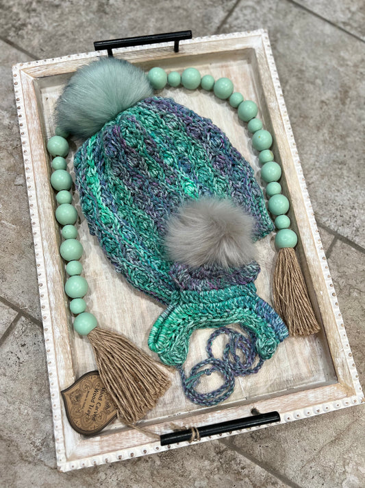 Green Blue Mommy and Matching Dog Beanie Hat Set