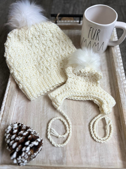 Ivory Mommy and Matching Pet Dog Beanie Hat Set